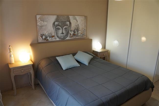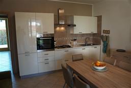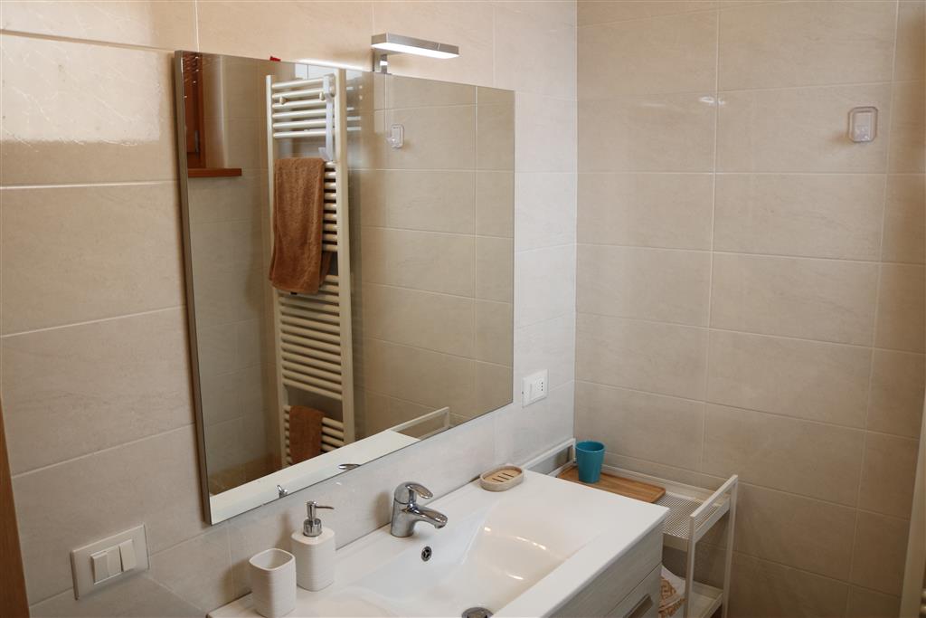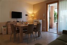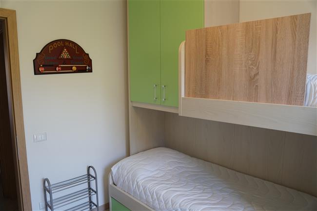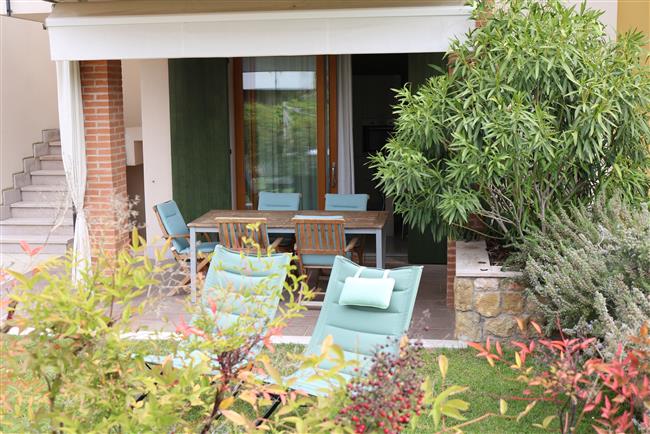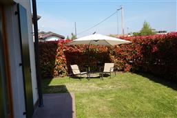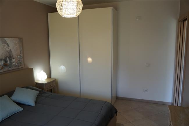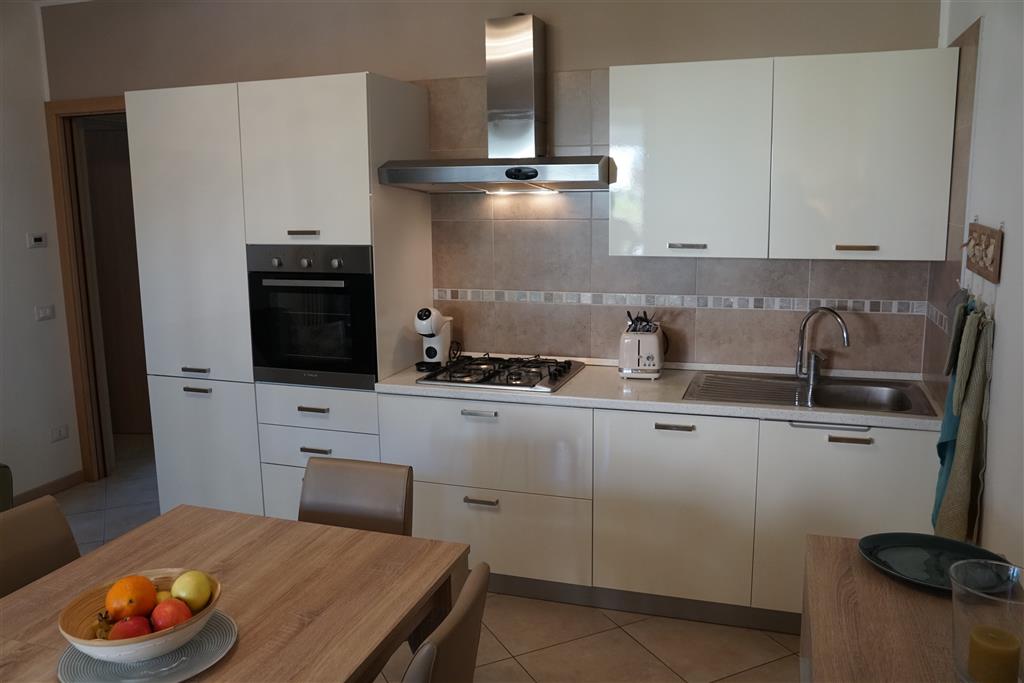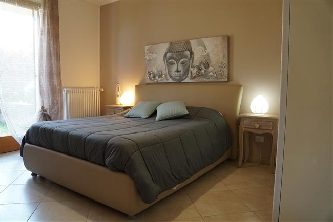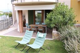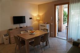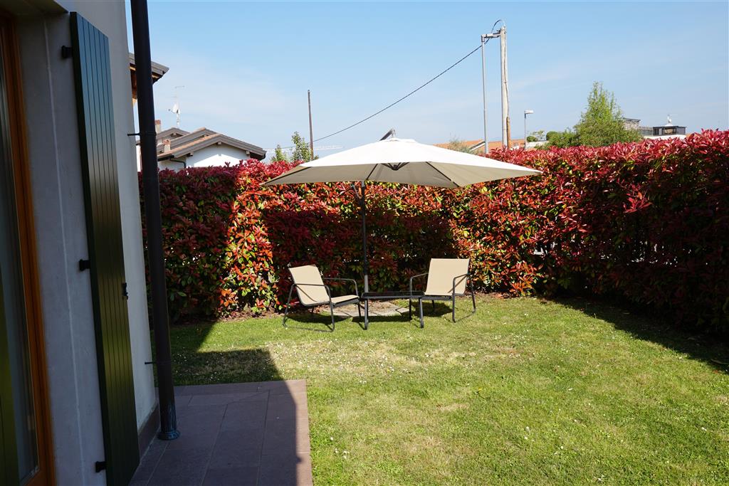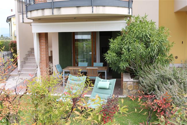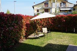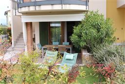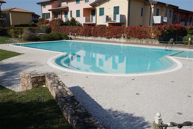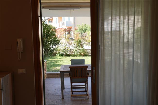 Bellissimo trilocale a pochi passi dal centro storico e dal lago, per 4 persone al piano terra di recente residence molto tranquillo. L'appartamento è composto da soggiorno con angolo cottura, due piccoli giardini, camera matrimoniale, camera con letti a castello e letto estraibile, bagno con doccia e secondo bagno nell'interrato con doccia e lavatrice. Garage con basculante. Arredamento di ottima qualità, lavatrice, frigo grande, forno ventilato, lavastoviglie, aria condizionata, TV satellitare, Wi-Fi. A disposizione: bella piscina in comune con gli altri residenti e garage privato. Animali non ammessi.