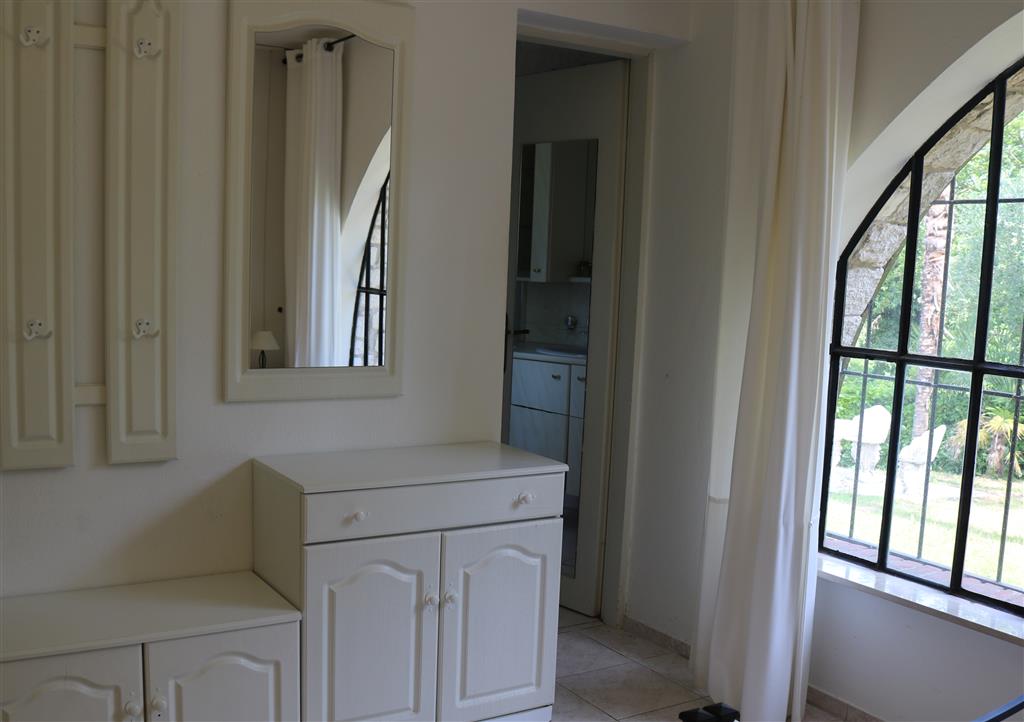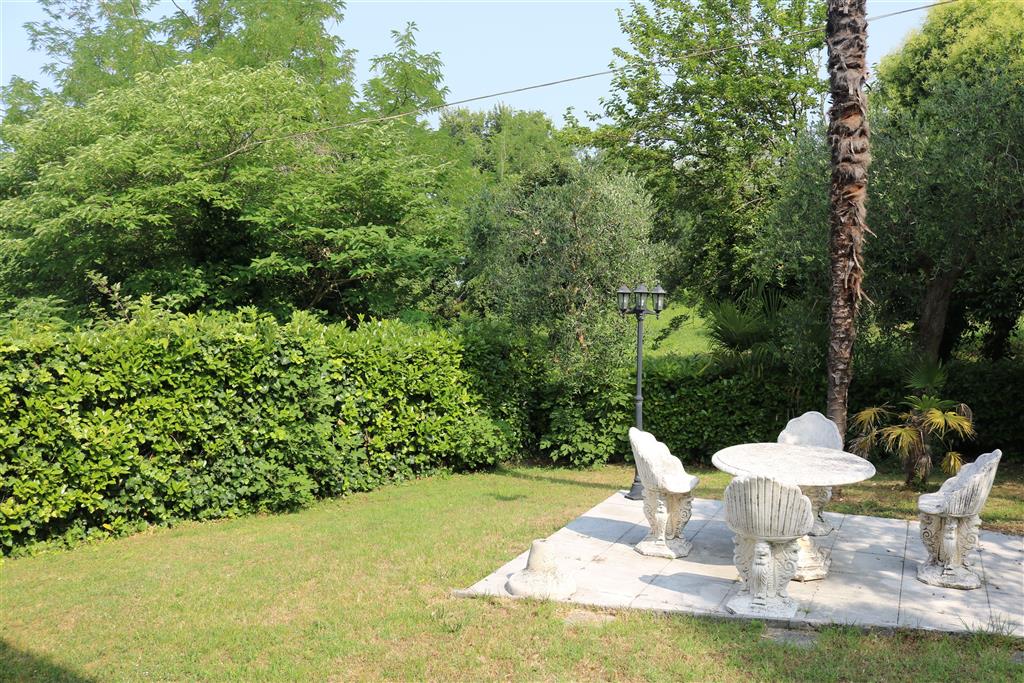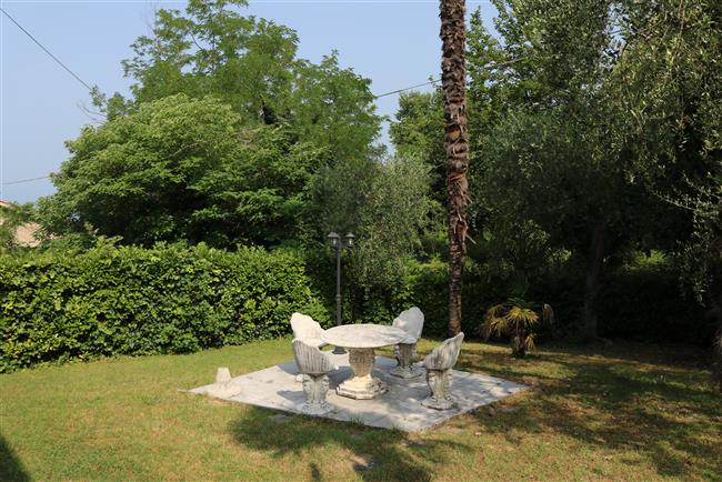 Tra la riva del lago di Garda e le colline che circondano Cisano, il villaggio S. Marina offre una soluzione perfetta per chi vuole raggiungere il centro storico di Cisano e le sue spiagge (700 m) ma anche i numerosi circuiti di cicloescursionismo del territorio. Al piano terra di una delle villette del villaggio è a vostra disposizione un appartamento vacanza bilocale, che condivide con l'appartamento del primo piano un ampio giardino di 600 metri quadrati con meravigliosa vegetazione mediterranea e vista lago. Costruito e arredato nel tipico stile delle villette italiane degli anni Settanta, l‘appartamento offre vari comfort: cucina con macchina del caffe e tostapane, wi-fi gratuito, posto auto all’interno della proprietà nonché la disponibilità della piscina del villaggio (distante circa 50 metri). L’appartamento dispone di una camera da letto matrimoniale, un bagno con bidet e doccia, un cucinino a quattro fuochi e un ampio soggiorno con divano e tavolo da pranzo. L’ampio portico che dà sul giardino garantisce cene divertenti anche durante il temporale estivo.